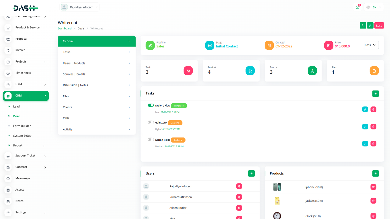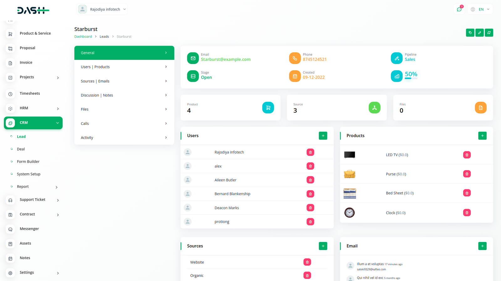 Get an actionable analysis of all your leads, deals, users, invoices, and products - in one interactive dashboard. Create and implement effective business plans, set a maximum number of deals, payment options and do so much more.